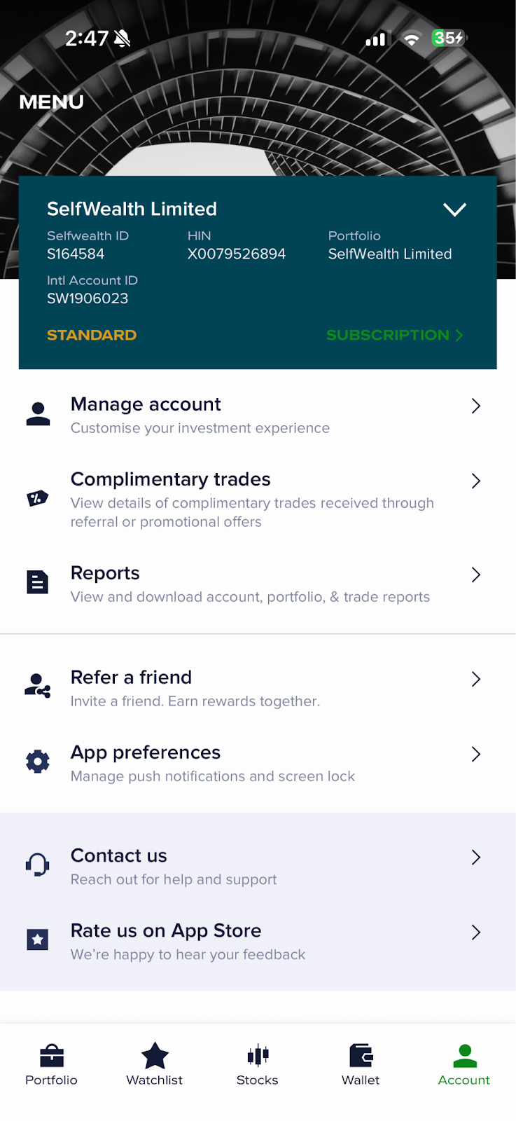Once your account is approved, you will be allocated a trading account number, referred to as an 'Selfwealth ID' as well as a 'Holder Identification Number' (HIN). These two numbers are used to identify your Selfwealth trading account.