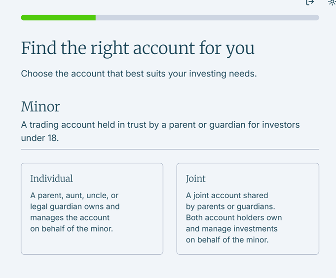 Simply click the JOIN NOW button on the Selfwealth website and follow the prompts to register and complete your application. You’ll need to click “Minor” account and from there you’ll have the option to choose whether the minor account will be managed as an individual or joint account.