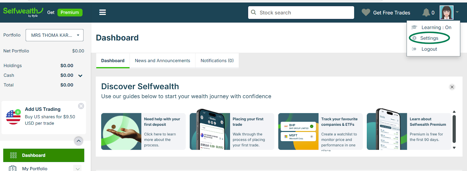 Clients with a contract notes feed only will need to log into their Selfwealth account and follow these steps: